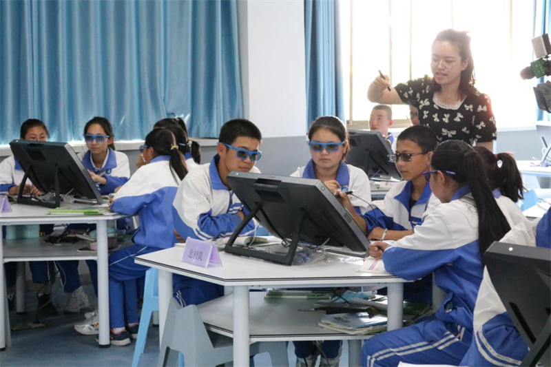 宁夏闽宁中学是一所建在戈壁上的移民学校,优质教育资源短缺始终是制约学校教学质量提升的最大痛点。2018年以来,学校现代化发展搭乘“互联网+教育”示范区建设的“高铁”,飞速前进。这所学校以“互联网+54321工程”为主线,积极探索乡村学校教育振兴之路,建成智慧教室、创客教室、理化探究实验室、数字智慧图书馆等现代化教学功能室,育人环境发生了翻天覆地的变化。学校党支部书记、校长王世德动情地说道:“有且只有互联网,才能让我们突破时空壁垒,实现了优质资源‘触手可及’的梦想。”