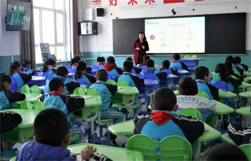 “请同学们大胆说出课桌、衣服的颜色。”3月1日,在固原市原州区第二小学“一拖五”在线互动课堂上,英语老师杨会娟通过远程摄像头,给黄铎堡镇金堡小学三年级学生上英语课,鼓励孩子们积极发言。