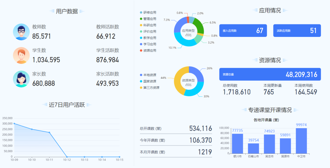 据宁夏教育信息化管理中心统计,截至10月13日,全区中小学在线直播上课已达88.6万堂,总时长超过47万小时,听课学生3553.7万人次;线上点播课播放量达到52.2万人次。全区中小学线上教学有序推进,教学内容不断丰富,教学计划扎实落实,教学质量稳步提升,以出色的战“疫”成绩庆祝党的二十大胜利召开。