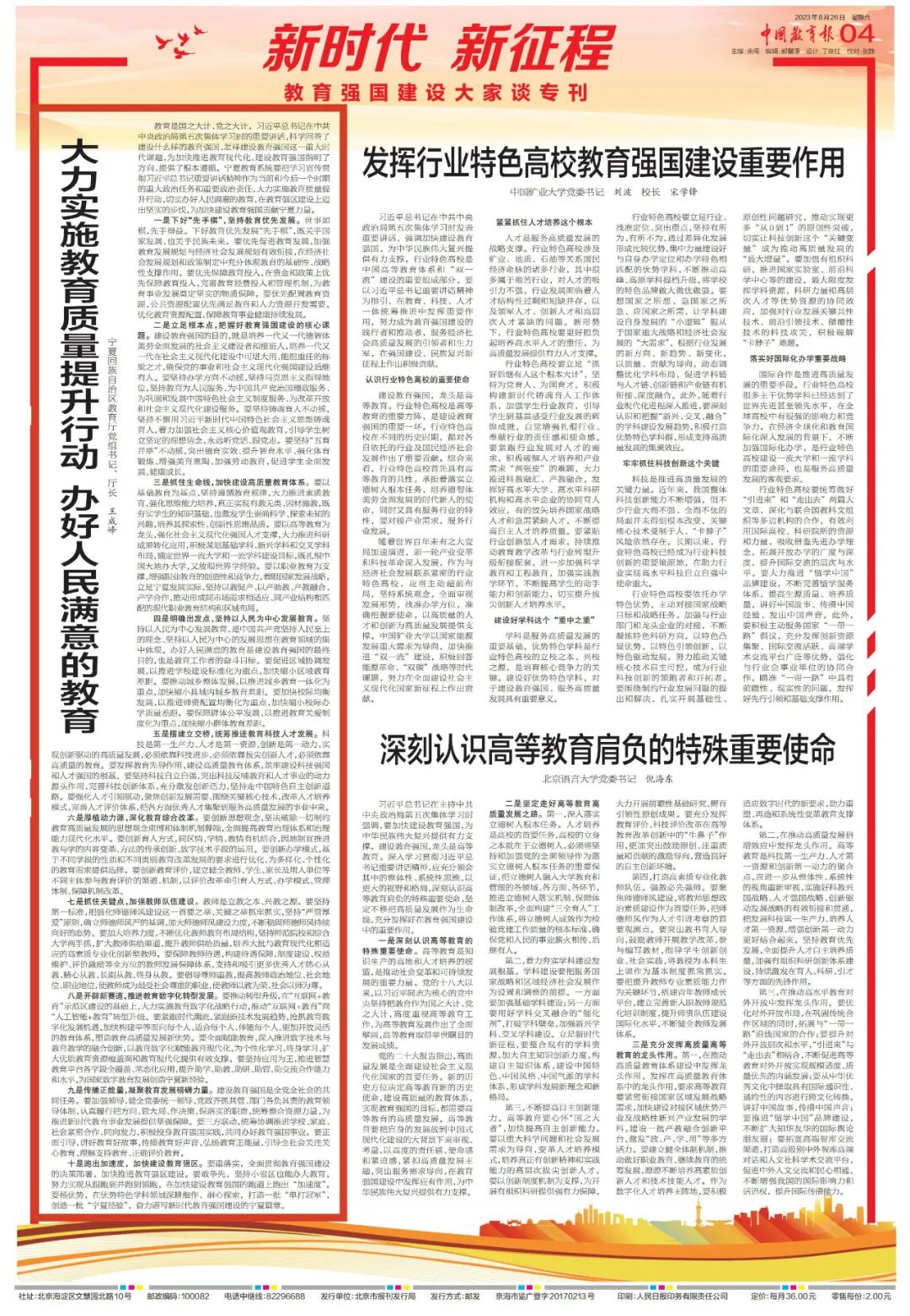 教育是国之大计、党之大计。习近平总书记在中共中央政治局第五次集体学习时的重要讲话,科学回答了建设什么样的教育强国、怎样建设教育强国这一重大时代课题,为加快推进教育现代化、建设教育强国指明了方向、提供了根本遵循。宁夏教育系统要把学习宣传贯彻习近平总书记重要讲话精神作为当前和今后一个时期的重大政治任务和重要政治责任,大力实施教育质量提升行动,切实办好人民满意的教育,在教育强区建设上迈出坚实的步伐,为加快建设教育强国贡献宁夏力量。
