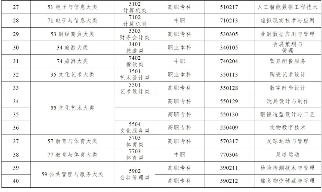 近日,教育部更新发布了《职业教育专业目录》,共增设40个新专业,其中,中职专业3个、高职专科专业20个、职业本科专业17个,增设数量是自2021年新版《职业教育专业目录》发布以来最多的一年。