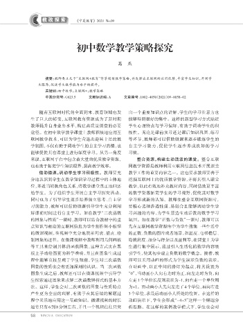 途径。在初中数学教学课堂上教师积极地应用互 极性。无论是课前预习还是课后知识巩固、练习
