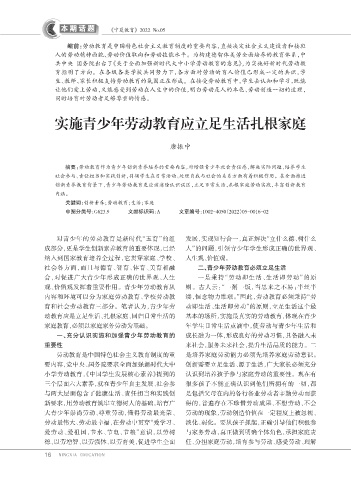 动教育应是立足生活、扎根家庭、回归日常生活的 基本的场所,实施最真实的劳动教育,体现在青少