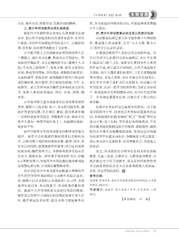 如,教师可以引导其树立劳动改变生活习惯、劳动 韩相勤. 劳动素养:新时代家庭劳动教育的 DNA[J]. 江苏教