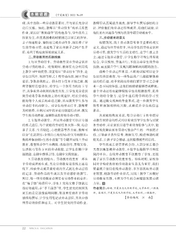2. 专题劳动教育。开展劳动教育可以以专题 动教育双结合的形式可以有效引导学生参与到家
