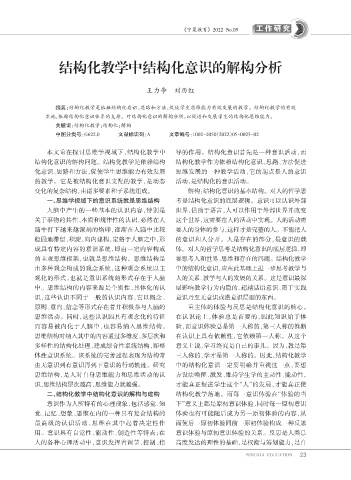 实施,依赖结构化意识体系的支撑。对结构化意识的解构分析,以促进和发展学生的结构化思维能力。