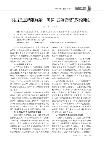 展。文章阐述,实施“五项管理”,学校要从制度建设、过程管理入手,突出重点、精准施策,赢得家长和社会的支