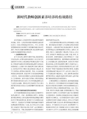 教师创新素养培养的有效路径,以期广大教师在创新素养的教育教学实践中不断提升自我,更好地培养具有创