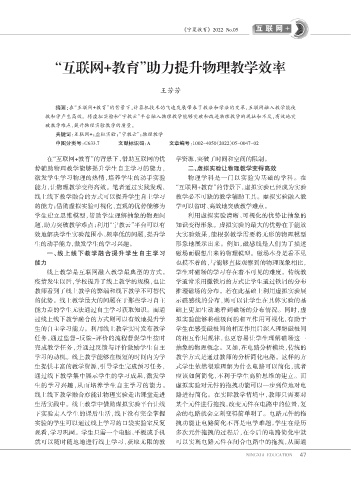 教和学产生高效。将虚拟实验和“宁教云”平台融入物理教学能够突破和改进物理教学的现状和不足,有效地突
