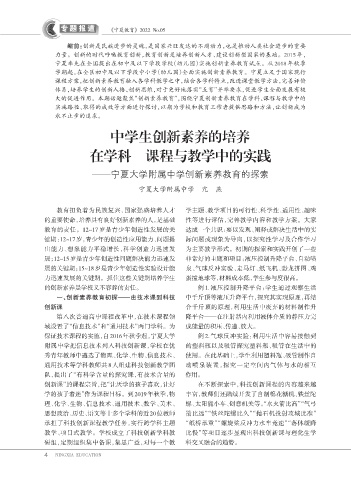 大的促进作用。本期话题聚焦“创新素养教育”,围绕宁夏创新素养教育在学科、课程与教学中的