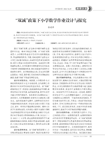 成,促进学生综合素养不断提高。文章就“双减”政策下小学数学作业设计以及实际应对策略进行探究,旨在促