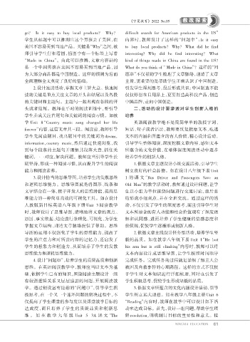 为大部分商品都是中国制造。这样的预测为后面 题串”不仅帮助学生梳理了文章脉络,理清了文章