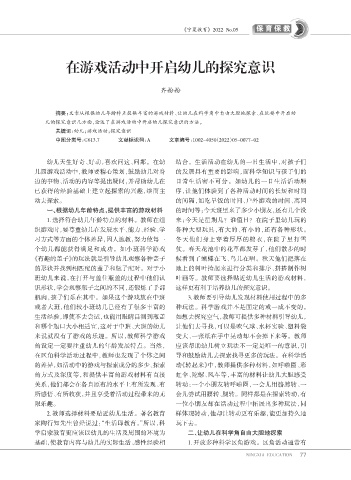 儿的探究意识几方面,论述了在游戏活动中开启幼儿探究意识的方法。