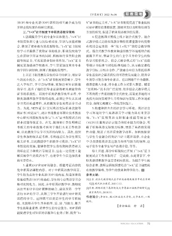 (EGP)和专业英语(ESP)课程的相互融合成为很                        X”证书的过关率。“1+X”证书制度促进了职业院校