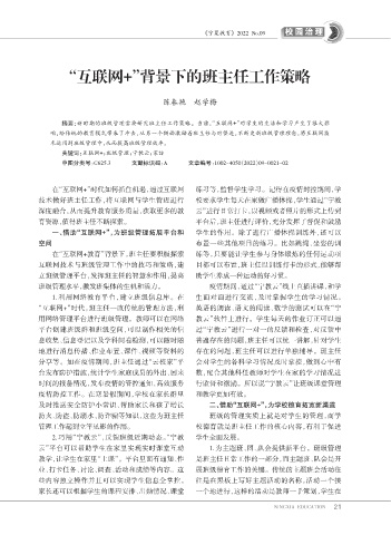分享等。如在疫情期间,班主任通过“云校家”平 会对学生的各科学习情况及时掌控,做到心中有