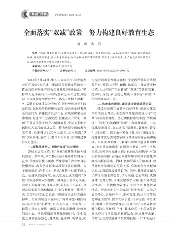 虑情绪,促进学生全面发展、健康成长。”可见,“双 减”政策落实情况。经过积极探索与实践,学校通