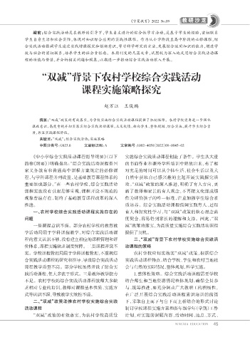 一、农村学校综合实践活动课程实施存在的 育人和探究性学习,与“双减”政策的核心理念高