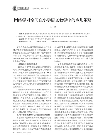 关键词:网络学习空间;小学语文教学;有效应用;策略