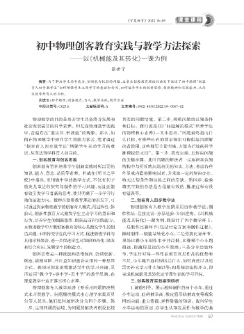 关键词:初中物理;创客教育;育人;教学实践;教学方法