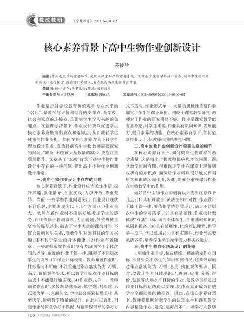 摘要:作业是教学的重要环节,是巩固课堂知识的重要手段。文章基于生物学科核心素养,对高中生物作业