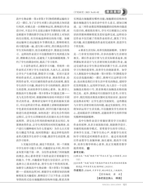 的理念,核心素养背景下的作业设计要根据学生                           [1]褚志远.“双减”视域下的“作业之变”[J]. 江西教育,2022