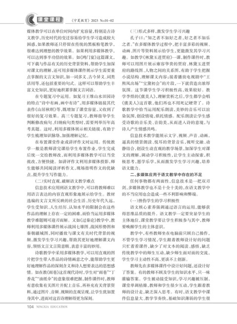 课 堂 课 程          《宁夏教育》2023 NO.01-02