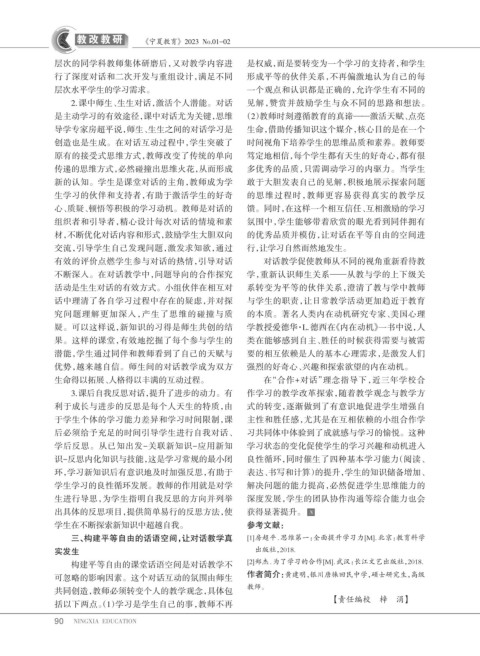 构建平等自由的课堂话语空间是对话教学不 [2]郑杰.为了学习的合作[M].武汉:长江文艺出版社,2018.