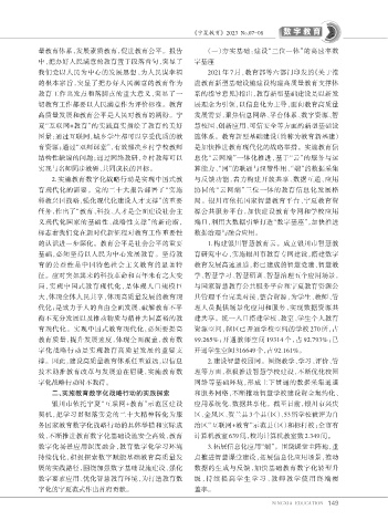 展的实践路径,围绕加强数字基础设施建设、强化 数据的生成与反馈,加快基础教育数字化转型升