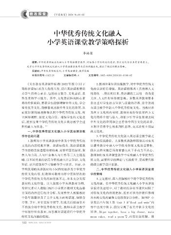 关键词:中华优秀传统文化;小学英语课堂;教学策略