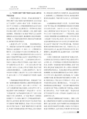 式,西夏区 STEM 教育联盟 8 所学校建立综合实践课 的混合研修模式,逐步实现全体教师专业培训全覆