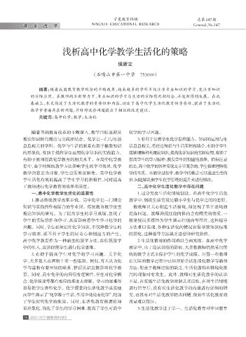 育。同时,高中化学的内容很有逻辑性,学生对化学概 用的现象时有发生。此外,教师对生活化教学的认识