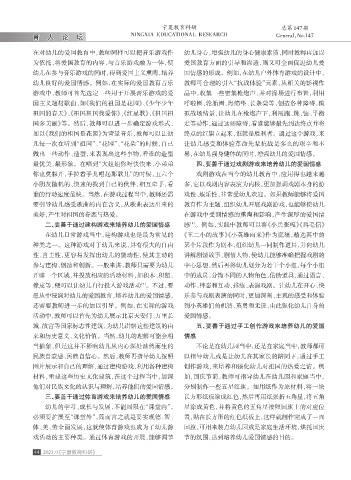 戏活动的主要种类。通过体育游戏的开展,能够调节 节的氛围,达到培养幼儿爱国情感的目的。