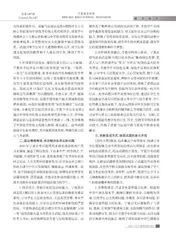 2021 年宁夏中考试题情境素材的选择既有广度 学生德智体美劳全面发展的考试内容体系,改变相对