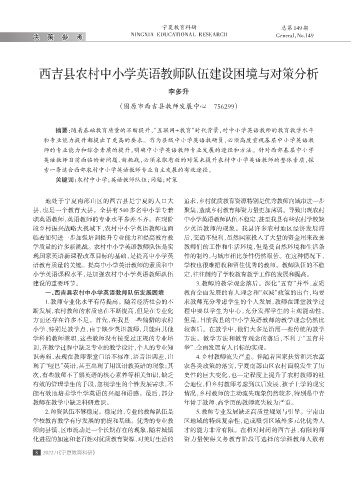 一、西吉县农村中小学英语教师队伍发展困境 教育全面发展的育人理念和“双减”政策的出台,均要