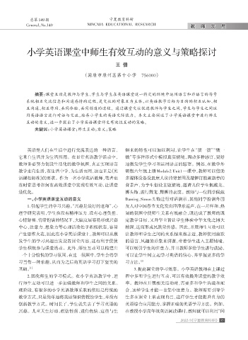 互动的意义,进一步提出了小学英语课堂师生有效性互动的策略。