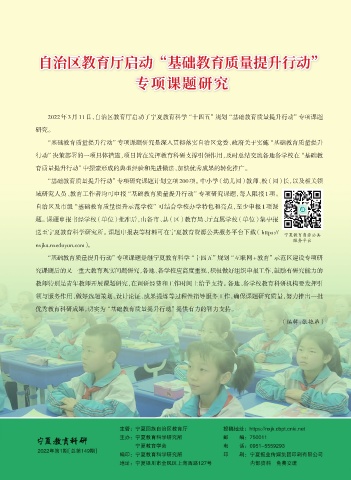 “基础教育质量提升行动”专项课题研究是深入贯彻落实自治区党委、政府关于实施“基础教育质量提升 NINGXIA EDUCATIONAL RESEARCH