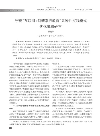 广其途以储之。”宁夏“互联网+教育”示范区建设相关 学生创新素养为基本价值取向和实践遵循的教育。”即