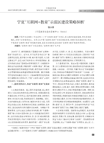 模式,具有十分重要的意义。文章立足宁夏“互联网+教育”示范区建设全局,回顾示范区建设历程,阐述