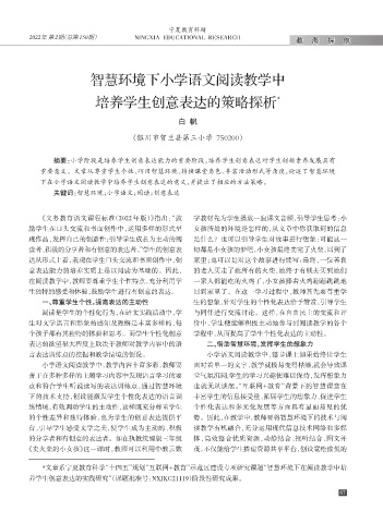 的个性差异和独特体验,也为学生的创意表达提供平 势。因此,在教学中,教师要将智慧环境下的技术与阅