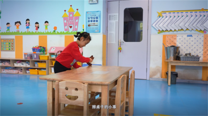 回到教室,孩子们要自己整理书包、管理物品,洗手、取餐、擦桌子……做力所能及的各种“小事”,培养文明习惯,养成责任意识。