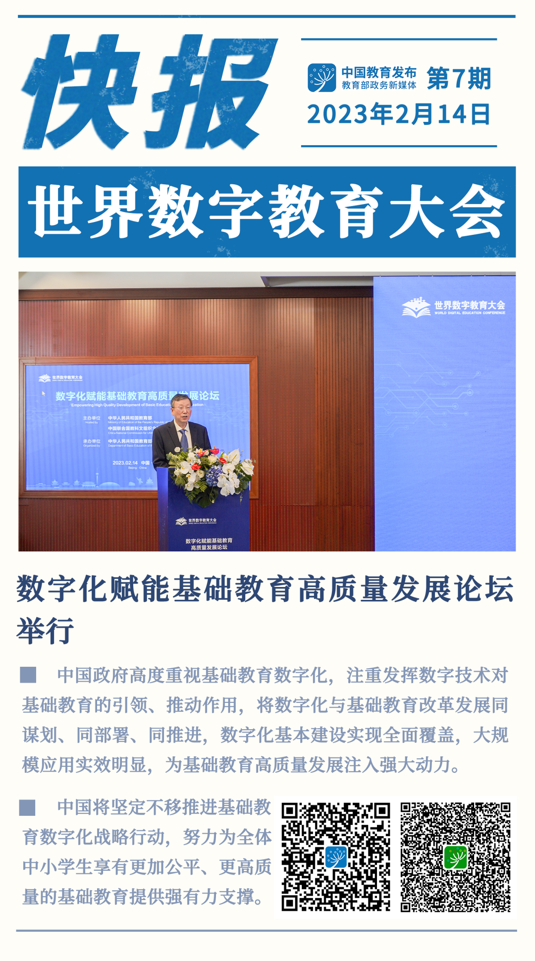 王嘉毅指出,中国政府高度重视基础教育数字化,注重发挥数字技术对基础教育的引领、推动作用,将数字化与基础教育改革发展同谋划、同部署、同推进,数字化基本建设实现全面覆盖,大规模应用实效明显,为基础教育高质量发展注入强大动力。
