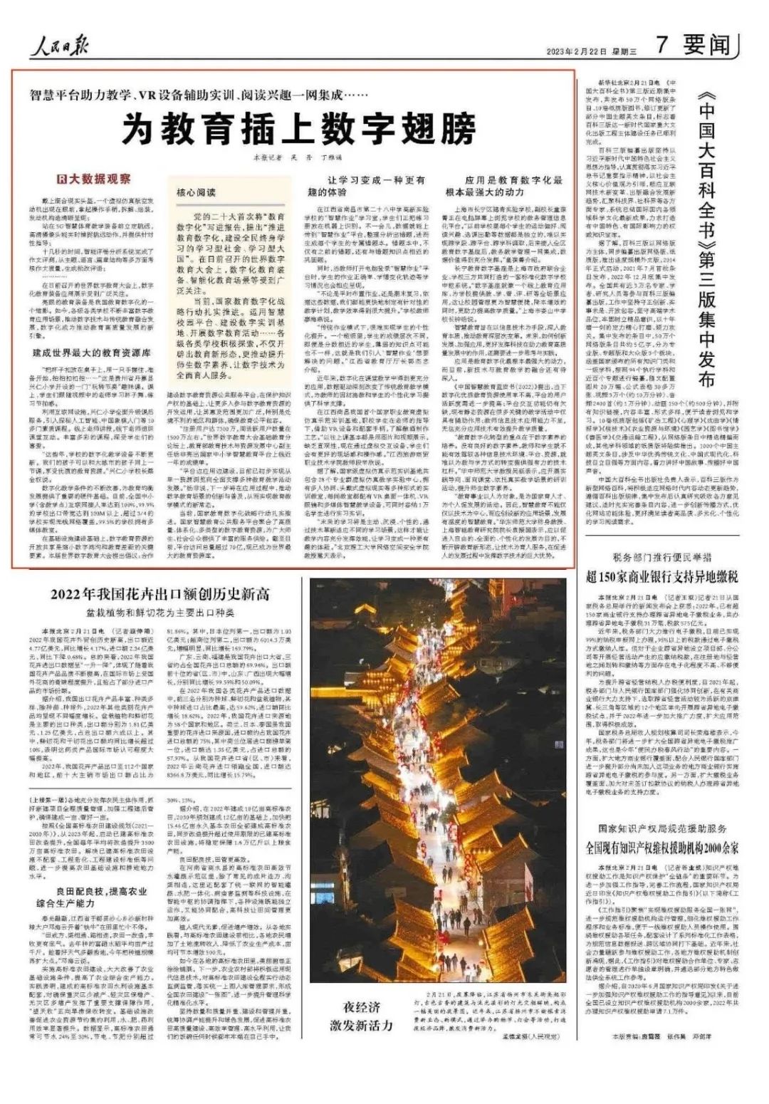 2月22日,《人民日报》刊发报道《为教育插上数字翅膀》,聚焦各级各类学校让数字技术为全面育人服务的积极探索。和教育小微一起看——