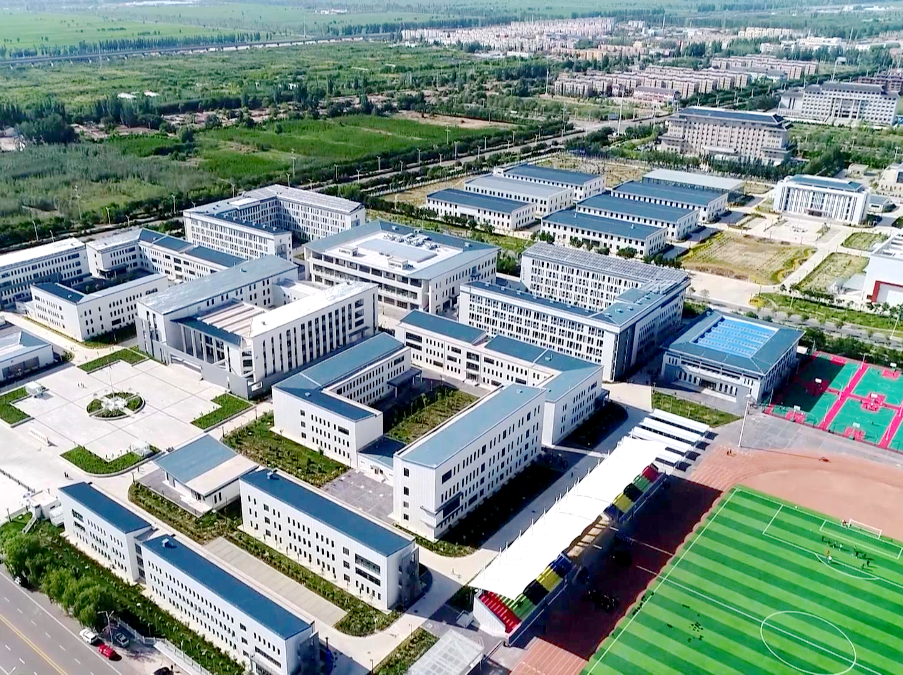学校占地1000亩,现有全日制在校生7980人。2020年进入自治区“双高”建设单位,目前已投入3104万元建设资金用于护理、机电一体化等专业群建设,通过购进专业高端教学设备,以项目化综合实训展开教学,大大提高学生学习实效。