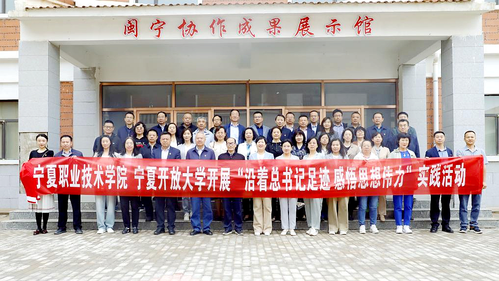 宁夏职业技术学院把理论课堂搬到“金沙滩”进行现场教学,组织党员干部走进闽宁镇,开展“沿着总书记足迹 感悟思想伟力”实践活动。大家沿着习近平总书记曾经走过的足迹,参观了山海小院、赵鸿文化大院和昌盛光伏科技生态园,回顾了闽宁镇发展历程,现场聆听电视剧《山海情》中马得宝原型谢兴昌书记讲党课,在闽宁镇的发展变迁中感悟中国共产党的思想伟力,强化了“总书记怎么说,我们就怎么做”的政治自觉。党课结束后,全体党员在不忘初心棚前重温入党誓词,坚定共产党员的使命担当。