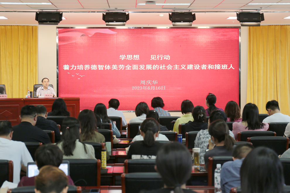 宁夏财经职业技术学院开展“感恩总书记 奋进新征程”学习贯彻习近平新时代中国特色社会主义思想宣讲活动,邀请自治区宣讲团成员、自治区党委宣传部常务副部长周庆华以“学思想、见行动,着力培养德智体美劳全面发展的社会主义建设者和接班人”为题,围绕真理之光、感恩忠诚、见行见效三个方面,聚焦主题教育“学思想、强党性、重实践、建新功”总要求进行宣讲,教育引导广大干部师生深切感恩习近平总书记对宁夏的深情厚爱和殷切希望,深切感悟习近平总书记视察宁夏重要讲话指示批示精神的真理力量和实践伟力,坚持思想引领,夯实发展支撑,做到安全筑底,弘扬劳模精神、劳动精神、工匠精神,以“青春奋斗”奔赴未来“壮丽山海”。