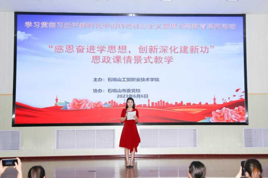 石嘴山工贸职业技术学院以红色党课为牵引,筑牢对党忠诚根基。联合石嘴山市委党校,共同为学院师生带来了情景讲演式红色党课《永远跟党走》,党课以百年党史为主线,通过情景讲演形式,再现了中国共产党第一位女共产党员缪伯英和丈夫何孟雄,抗日英雄赵一曼、陈辉,敦煌文物保护杰出贡献者樊锦诗,抗“疫”英雄陈薇的感人事迹,引导全体师生在情景中感悟信仰的力量,在实践中做好薪火的传承。