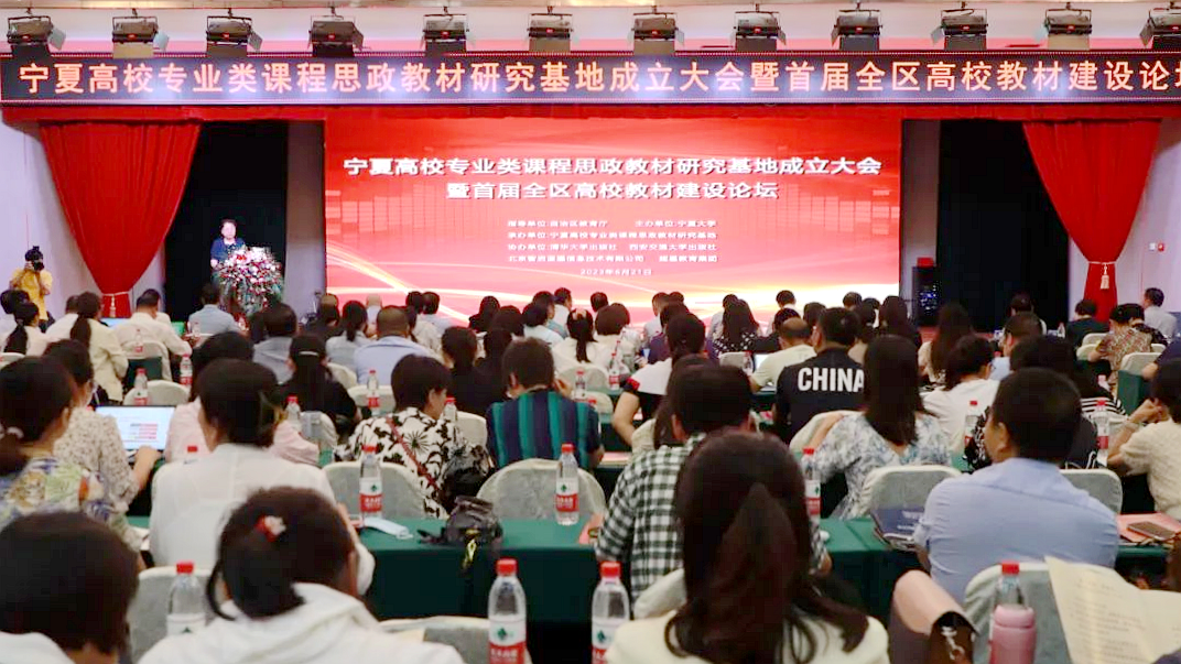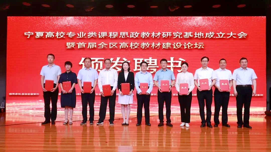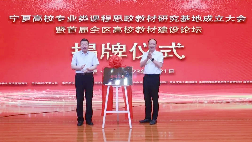 习近平总书记在中共中央政治局第五次集体学习时强调,要加强教材建设和管理,牢牢把握正确政治方向和价值导向,用心打造培根铸魂、启智增慧的精品教材。为切实推动学习贯彻习近平总书记重要讲话精神转化为主题教育的生动实践,进一步助推宁夏高校教材建设高质量发展,6月21日,自治区教育厅在宁夏大学举办宁夏高校专业类课程思政教材研究基地成立大会暨首届宁夏高校教材建设论坛。自治区教育工委副书记、教育厅党组成员李玮出席大会并为基地揭牌。