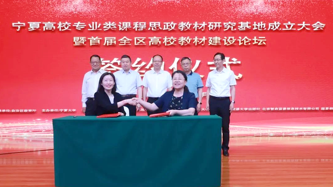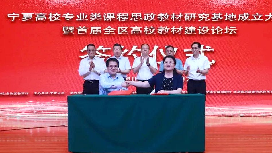 会上,宁夏大学本科生院同清华大学出版社、西安交通大学出版社签署战略合作协议,为宁夏高校专业类课程思政教材研究基地专家颁发聘书。