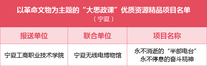 宁夏无线电博物馆是由工业和信息化部与宁夏回族自治区人民政府共同投资建设的全国唯一专业性无线电博物馆,是集普及无线电科学知识、开展红色革命教育等多功能为一体的综合实践基地。为进一步深挖宁夏红色资源,讲好无线电技术在百年党史和中华民族伟大复兴中国梦新征程中发挥的积极作用,引导大学生运用好、传承好红色电波背后的奋斗精神,宁夏工商职业技术学院积极与宁夏无线电博物馆紧密合作,共建“思想政治理论课实践教学基地”,让更多青年学生深入了解“永不消逝的‘半部电台’”故事,传承“永不停息的奋斗精神”,使思政课底色“亮”起来,使教学形式“活”起来,切实推进“大思政课”走深走实,努力提升育人实效,为实现第二个百年奋斗目标积蓄力量。