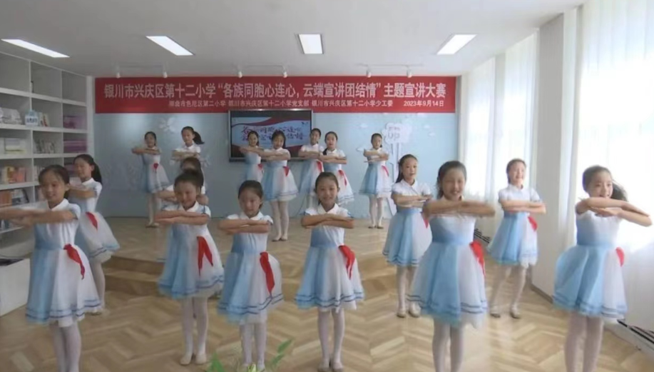 银川市兴庆区第十二小学与西藏色尼区第二小学开展“各族同胞心连心,云端宣讲团结情”主题宣讲大赛。